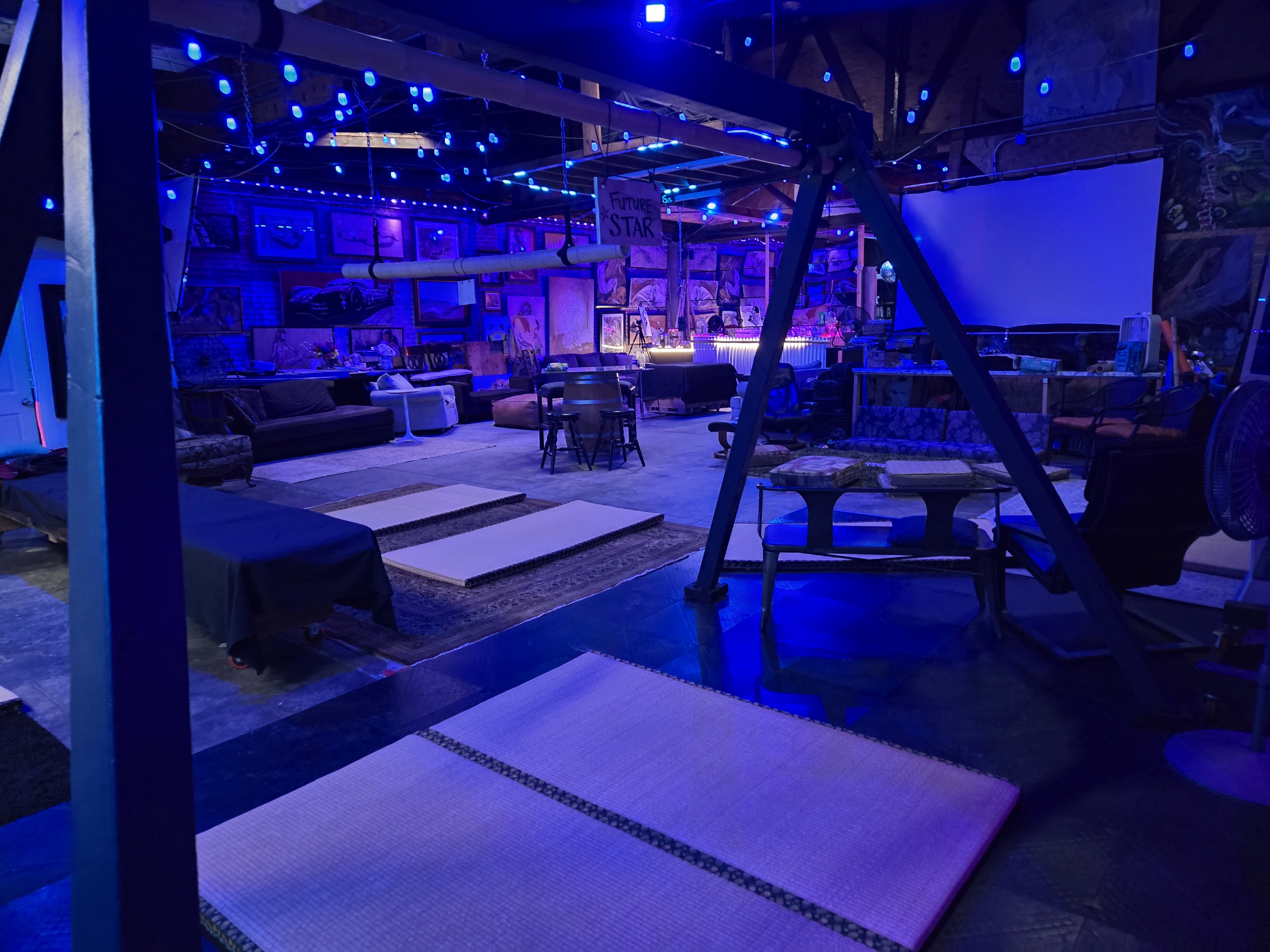 We have a spacious 4,000 square foot warehouse, working art studio, with fun music in the background and a unique atmosphere. Rope Jams are designed with no set criteria or formal lesson plan. Single, partnered, beginner or advanced, Rope Jams offer great opportunities to meet people in the rope community, peer share, discuss and practice what you learned in class. Many Rope Couples use these nights to create a unique kink scene or play in their dynamic.